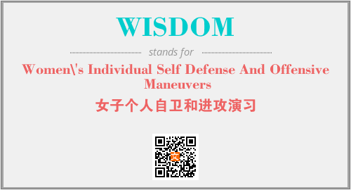 上述内容是“Women\'s Individual Self Defense And Offensive Maneuvers”作为“WISDOM”的缩写,解释为“女子个人自卫和进攻演习”时的信息,以及英文缩略词WISDOM所代表的英文单词,其对应的中文拼音、详细解释以及在英文中的流行度和相关分类、应用领域及应用示例等。