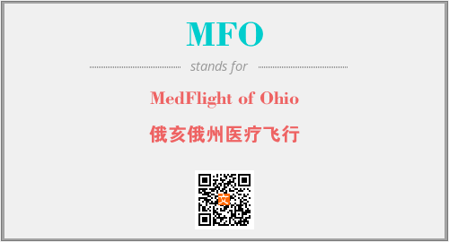 上述内容是“MedFlight of Ohio”作为“MFO”的缩写,解释为“俄亥俄州医疗飞行”时的信息,以及英文缩略词MFO所代表的英文单词,其对应的中文拼音、详细解释以及在英文中的流行度和相关分类、应用领域及应用示例等。