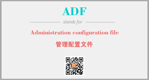 英文缩略词“ADF”经常作为“Administration configuration file”的英文缩写来使用,中文表示:“管理配置文件”。本文将详细介绍英文缩写词ADF所代表英文单词,其对应的中文拼音、详细解释以及在英语中的流行度。此外,还有关于缩略词ADF的分类、应用领域及相关应用示例等。