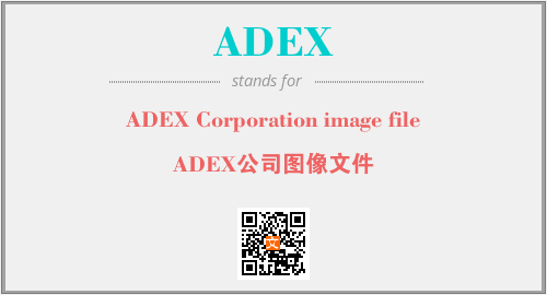 上述内容是“ADEX Corporation image file”作为“ADEX”的缩写,解释为“ADEX公司图像文件”时的信息,以及英文缩略词ADEX所代表的英文单词,其对应的中文拼音、详细解释以及在英文中的流行度和相关分类、应用领域及应用示例等。