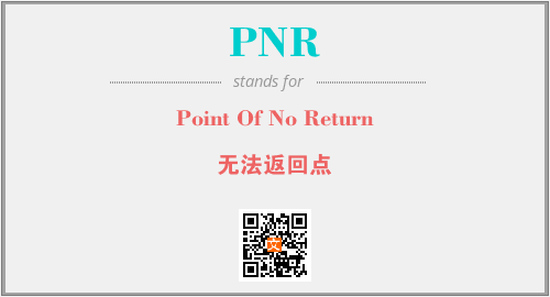 英文缩略词“PNR”经常作为“Point Of No Return”的英文缩写来使用,中文表示:“无法返回点”。本文将详细介绍英文缩写词PNR所代表英文单词,其对应的中文拼音、详细解释以及在英语中的流行度。此外,还有关于缩略词PNR的分类、应用领域及相关应用示例等。