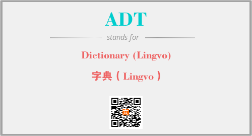 英文缩略词“ADT”经常作为“Dictionary (Lingvo)”的英文缩写来使用,中文表示:“字典(Lingvo)”。本文将详细介绍英文缩写词ADT所代表英文单词,其对应的中文拼音、详细解释以及在英语中的流行度。此外,还有关于缩略词ADT的分类、应用领域及相关应用示例等。