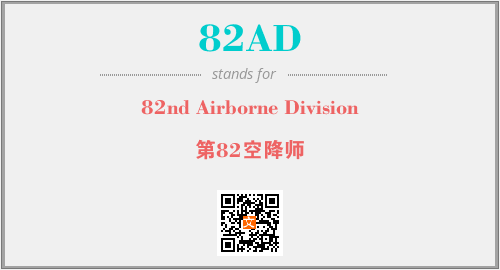 上述内容是“82nd Airborne Division”作为“82AD”的缩写,解释为“第82空降师”时的信息,以及英文缩略词82AD所代表的英文单词,其对应的中文拼音、详细解释以及在英文中的流行度和相关分类、应用领域及应用示例等。
