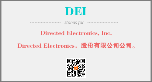 上述内容是“Directed Electronics, Inc.”作为“DEI”的缩写,解释为“Directed Electronics,股份有限公司公司。”时的信息,以及英文缩略词DEI所代表的英文单词,其对应的中文拼音、详细解释以及在英文中的流行度和相关分类、应用领域及应用示例等。