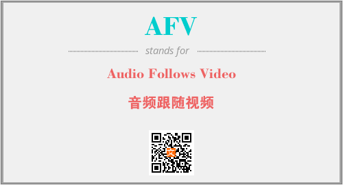 上述内容是“Audio Follows Video”作为“AFV”的缩写,解释为“音频跟随视频”时的信息,以及英文缩略词AFV所代表的英文单词,其对应的中文拼音、详细解释以及在英文中的流行度和相关分类、应用领域及应用示例等。