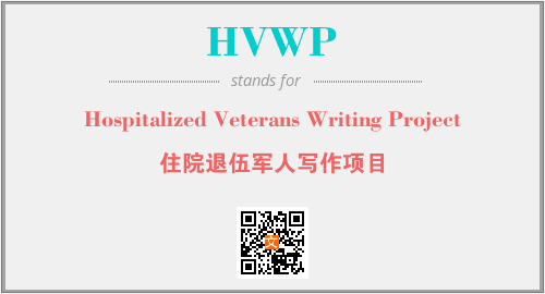 上述内容是“Hospitalized Veterans Writing Project”作为“HVWP”的缩写,解释为“住院退伍军人写作项目”时的信息,以及英文缩略词HVWP所代表的英文单词,其对应的中文拼音、详细解释以及在英文中的流行度和相关分类、应用领域及应用示例等。