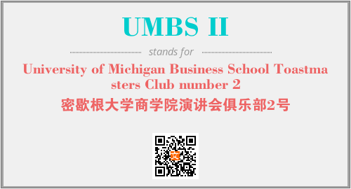 以上为University of Michigan Business School Toastmasters Club number 2英文缩略词UMBS II的中文解释,以及该英文缩写在英语的流行度、分类和应用领域方面的信息。