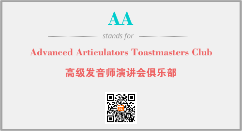 以上为Advanced Articulators Toastmasters Club英文缩略词AA的中文解释,以及该英文缩写在英语的流行度、分类和应用领域方面的信息。