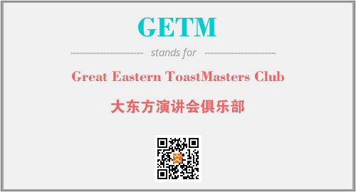 以上为Great Eastern ToastMasters Club英文缩略词GETM的中文解释,以及该英文缩写在英语的流行度、分类和应用领域方面的信息。