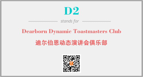 以上为Dearborn Dynamic Toastmasters Club英文缩略词D2的中文解释,以及该英文缩写在英语的流行度、分类和应用领域方面的信息。