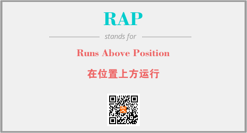 上述内容是“Runs Above Position”作为“RAP”的缩写,解释为“在位置上方运行”时的信息,以及英文缩略词RAP所代表的英文单词,其对应的中文拼音、详细解释以及在英文中的流行度和相关分类、应用领域及应用示例等。