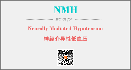 英文缩略词“NMH”经常作为“Neurally Mediated Hypotension”的英文缩写来使用,中文表示:“神经介导性低血压”。本文将详细介绍英文缩写词NMH所代表英文单词,其对应的中文拼音、详细解释以及在英语中的流行度。此外,还有关于缩略词NMH的分类、应用领域及相关应用示例等。