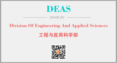 上述内容是“Division Of Engineering And Applied Sciences”作为“DEAS”的缩写,解释为“工程与应用科学部”时的信息,以及英文缩略词DEAS所代表的英文单词,其对应的中文拼音、详细解释以及在英文中的流行度和相关分类、应用领域及应用示例等。