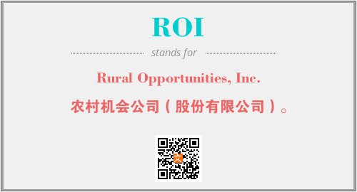 上述内容是“Rural Opportunities, Inc.”作为“ROI”的缩写,解释为“农村机会公司(股份有限公司)。”时的信息,以及英文缩略词ROI所代表的英文单词,其对应的中文拼音、详细解释以及在英文中的流行度和相关分类、应用领域及应用示例等。