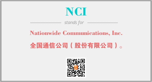 上述内容是“Nationwide Communications, Inc.”作为“NCI”的缩写,解释为“全国通信公司(股份有限公司)。”时的信息,以及英文缩略词NCI所代表的英文单词,其对应的中文拼音、详细解释以及在英文中的流行度和相关分类、应用领域及应用示例等。