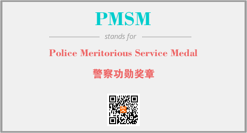 上述内容是“Police Meritorious Service Medal”作为“PMSM”的缩写,解释为“警察功勋奖章”时的信息,以及英文缩略词PMSM所代表的英文单词,其对应的中文拼音、详细解释以及在英文中的流行度和相关分类、应用领域及应用示例等。