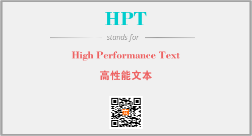 英文缩略词“HPT”经常作为“High Performance Text”的英文缩写来使用,中文表示:“高性能文本”。本文将详细介绍英文缩写词HPT所代表英文单词,其对应的中文拼音、详细解释以及在英语中的流行度。此外,还有关于缩略词HPT的分类、应用领域及相关应用示例等。