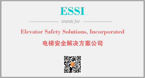 上述内容是“Elevator Safety Solutions, Incorporated”作为“ESSI”的缩写,解释为“电梯安全解决方案公司”时的信息,以及英文缩略词ESSI所代表的英文单词,其对应的中文拼音、详细解释以及在英文中的流行度和相关分类、应用领域及应用示例等。