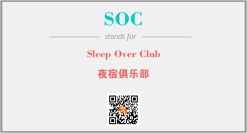 上述内容是“Sleep Over Club”作为“SOC”的缩写,解释为“夜宿俱乐部”时的信息,以及英文缩略词SOC所代表的英文单词,其对应的中文拼音、详细解释以及在英文中的流行度和相关分类、应用领域及应用示例等。