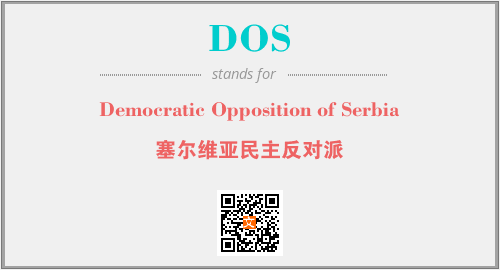 上述内容是“Democratic Opposition of Serbia”作为“DOS”的缩写,解释为“塞尔维亚民主反对派”时的信息,以及英文缩略词DOS所代表的英文单词,其对应的中文拼音、详细解释以及在英文中的流行度和相关分类、应用领域及应用示例等。