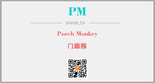 英文缩略词“PM”经常作为“Porch Monkey”的英文缩写来使用,中文表示:“门廊猴”。本文将详细介绍英文缩写词PM所代表英文单词,其对应的中文拼音、详细解释以及在英语中的流行度。此外,还有关于缩略词PM的分类、应用领域及相关应用示例等。