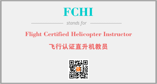 英文缩略词“FCHI”经常作为“Flight Certified Helicopter Instructor”的英文缩写来使用,中文表示:“飞行认证直升机教员”。本文将详细介绍英文缩写词FCHI所代表英文单词,其对应的中文拼音、详细解释以及在英语中的流行度。此外,还有关于缩略词FCHI的分类、应用领域及相关应用示例等。