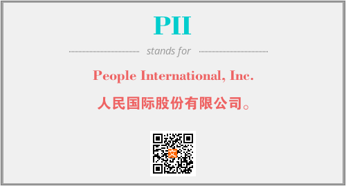 上述内容是“People International, Inc.”作为“PII”的缩写,解释为“人民国际股份有限公司。”时的信息,以及英文缩略词PII所代表的英文单词,其对应的中文拼音、详细解释以及在英文中的流行度和相关分类、应用领域及应用示例等。