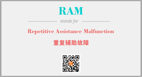 以上为Repetitive Assistance Malfunction英文缩略词RAM的中文解释,以及该英文缩写在英语的流行度、分类和应用领域方面的信息。