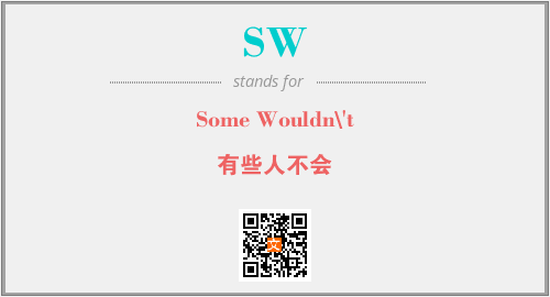 以上为Some Wouldn\'t英文缩略词SW的中文解释,以及该英文缩写在英语的流行度、分类和应用领域方面的信息。