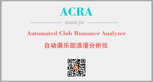 以上为Automated Club Romance Analyzer英文缩略词ACRA的中文解释,以及该英文缩写在英语的流行度、分类和应用领域方面的信息。