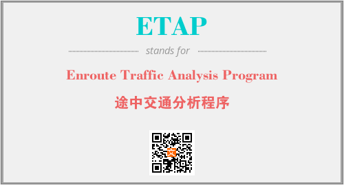英文缩略词“ETAP”经常作为“Enroute Traffic Analysis Program”的英文缩写来使用,中文表示:“途中交通分析程序”。本文将详细介绍英文缩写词ETAP所代表英文单词,其对应的中文拼音、详细解释以及在英语中的流行度。此外,还有关于缩略词ETAP的分类、应用领域及相关应用示例等。