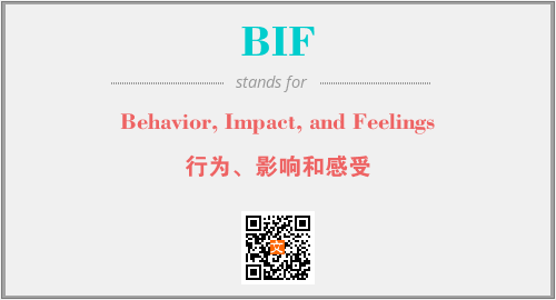 上述内容是“Behavior, Impact, and Feelings”作为“BIF”的缩写,解释为“行为、影响和感受”时的信息,以及英文缩略词BIF所代表的英文单词,其对应的中文拼音、详细解释以及在英文中的流行度和相关分类、应用领域及应用示例等。