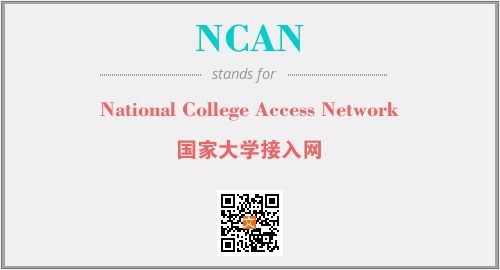 上述内容是“National College Access Network”作为“NCAN”的缩写,解释为“国家大学接入网”时的信息,以及英文缩略词NCAN所代表的英文单词,其对应的中文拼音、详细解释以及在英文中的流行度和相关分类、应用领域及应用示例等。