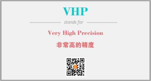 上述内容是“Very High Precision”作为“VHP”的缩写,解释为“非常高的精度”时的信息,以及英文缩略词VHP所代表的英文单词,其对应的中文拼音、详细解释以及在英文中的流行度和相关分类、应用领域及应用示例等。