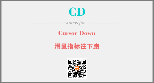 上述内容是“Cursor Down”作为“CD”的缩写,解释为“滑鼠指标往下跑”时的信息,以及英文缩略词CD所代表的英文单词,其对应的中文拼音、详细解释以及在英文中的流行度和相关分类、应用领域及应用示例等。