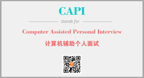 上述内容是“Computer Assisted Personal Interview”作为“CAPI”的缩写,解释为“计算机辅助个人面试”时的信息,以及英文缩略词CAPI所代表的英文单词,其对应的中文拼音、详细解释以及在英文中的流行度和相关分类、应用领域及应用示例等。