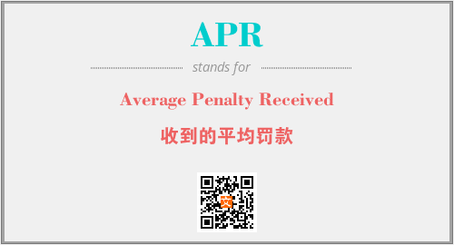 上述内容是“Average Penalty Received”作为“APR”的缩写,解释为“收到的平均罚款”时的信息,以及英文缩略词APR所代表的英文单词,其对应的中文拼音、详细解释以及在英文中的流行度和相关分类、应用领域及应用示例等。