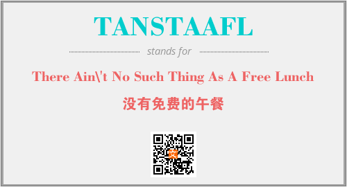 上述内容是“There Ain\'t No Such Thing As A Free Lunch”作为“TANSTAAFL”的缩写,解释为“没有免费的午餐”时的信息,以及英文缩略词TANSTAAFL所代表的英文单词,其对应的中文拼音、详细解释以及在英文中的流行度和相关分类、应用领域及应用示例等。