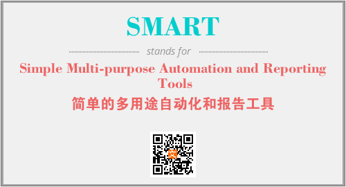 以上为Simple Multi-purpose Automation and Reporting Tools英文缩略词SMART的中文解释,以及该英文缩写在英语的流行度、分类和应用领域方面的信息。