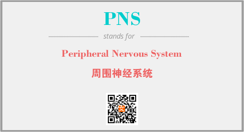 上述内容是“Peripheral Nervous System”作为“PNS”的缩写,解释为“周围神经系统”时的信息,以及英文缩略词PNS所代表的英文单词,其对应的中文拼音、详细解释以及在英文中的流行度和相关分类、应用领域及应用示例等。