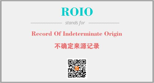 英文缩略词“ROIO”经常作为“Record Of Indeterminate Origin”的英文缩写来使用,中文表示:“不确定来源记录”。本文将详细介绍英文缩写词ROIO所代表英文单词,其对应的中文拼音、详细解释以及在英语中的流行度。此外,还有关于缩略词ROIO的分类、应用领域及相关应用示例等。