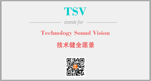 上述内容是“Technology Sound Vision”作为“TSV”的缩写,解释为“技术健全愿景”时的信息,以及英文缩略词TSV所代表的英文单词,其对应的中文拼音、详细解释以及在英文中的流行度和相关分类、应用领域及应用示例等。