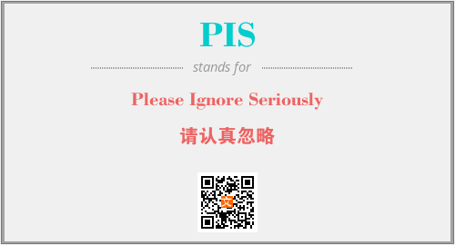 以上为Please Ignore Seriously英文缩略词PIS的中文解释,以及该英文缩写在英语的流行度、分类和应用领域方面的信息。