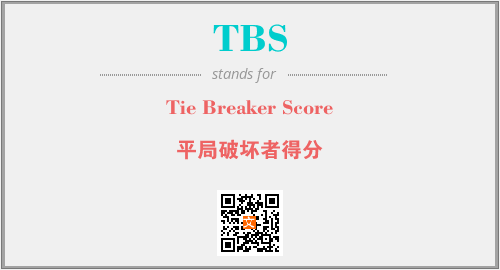 上述内容是“Tie Breaker Score”作为“TBS”的缩写,解释为“平局破坏者得分”时的信息,以及英文缩略词TBS所代表的英文单词,其对应的中文拼音、详细解释以及在英文中的流行度和相关分类、应用领域及应用示例等。