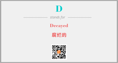 上述内容是“Decayed”作为“D”的缩写,解释为“腐烂的”时的信息,以及英文缩略词D所代表的英文单词,其对应的中文拼音、详细解释以及在英文中的流行度和相关分类、应用领域及应用示例等。