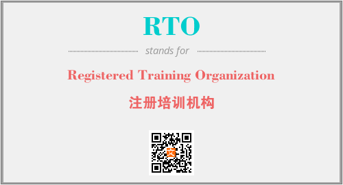 英文缩略词“RTO”经常作为“Registered Training Organization”的英文缩写来使用,中文表示:“注册培训机构”。本文将详细介绍英文缩写词RTO所代表英文单词,其对应的中文拼音、详细解释以及在英语中的流行度。此外,还有关于缩略词RTO的分类、应用领域及相关应用示例等。