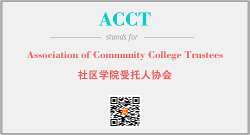 上述内容是“Association of Community College Trustees”作为“ACCT”的缩写,解释为“社区学院受托人协会”时的信息,以及英文缩略词ACCT所代表的英文单词,其对应的中文拼音、详细解释以及在英文中的流行度和相关分类、应用领域及应用示例等。