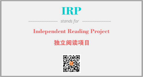 英文缩略词“IRP”经常作为“Independent Reading Project”的英文缩写来使用,中文表示:“独立阅读项目”。本文将详细介绍英文缩写词IRP所代表英文单词,其对应的中文拼音、详细解释以及在英语中的流行度。此外,还有关于缩略词IRP的分类、应用领域及相关应用示例等。