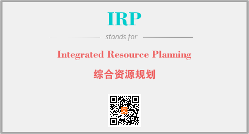 上述内容是“Integrated Resource Planning”作为“IRP”的缩写,解释为“综合资源规划”时的信息,以及英文缩略词IRP所代表的英文单词,其对应的中文拼音、详细解释以及在英文中的流行度和相关分类、应用领域及应用示例等。