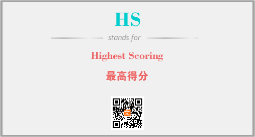 上述内容是“Highest Scoring”作为“HS”的缩写,解释为“最高得分”时的信息,以及英文缩略词HS所代表的英文单词,其对应的中文拼音、详细解释以及在英文中的流行度和相关分类、应用领域及应用示例等。